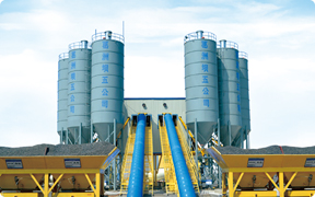 骨料配料站可以設(shè)計(jì)成全地倉(cāng)式,半地倉(cāng)式或者地上式,可以有三至五個(gè)骨料集料倉(cāng),采用裝載機(jī)或者自卸車向骨料倉(cāng)供料,骨料倉(cāng)卸料門通過(guò)氣缸接受計(jì)算機(jī)的指令完成啟閉動(dòng)作,有快、慢兩種卸料方式,計(jì)量斗門接受計(jì)算機(jī)的指令完成卸料至水平皮帶機(jī),由斜皮帶機(jī)將骨料送至樓上的過(guò)渡倉(cāng)。各骨料均采用單獨(dú)計(jì)量方式或者累加計(jì)量方式,均能保證準(zhǔn)確計(jì)量且工作性能穩(wěn)定,計(jì)算機(jī)控制系統(tǒng)可顯示物料的狀態(tài)。具有欠秤補(bǔ)料、超秤報(bào)警、扣料、落差自動(dòng)跟蹤、自動(dòng)修正功能,保證了骨料配比的精準(zhǔn)。主樓結(jié)構(gòu)